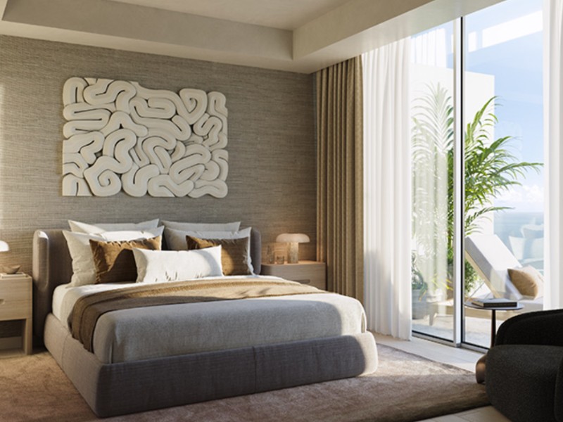 Los dormitorios están diseñados para maximizar la luz natural, creando espacios abiertos y luminosos que invitan al descanso y la relajación. Icon Hollywood Beach redefine el lujo costero con sus impresionantes residencias que ofrecen vistas inigualables y una gama de comodidades de alta gama
